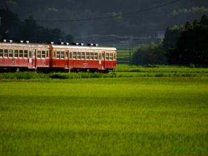 田んぼの海原 2012.08.10 田んぼの海を2両の列車、コトコトコト走って行くよ。お客を乗せて、コトコトコトコト走って行くよ。今日は何処まで行こうかな? E-5 | 1/800sec | f2.8 | iso200 | 64mm | 2012.08.04 | 下矢田