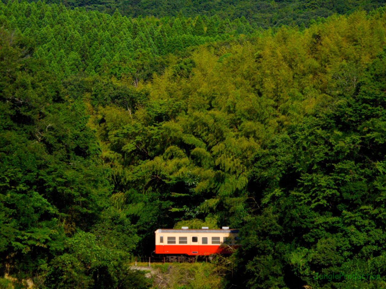 この時期の朝は、たいていココからスタートします。といっても、何回行っても雲に陰ってウマく撮る事が出来なかったからなのですが。で、今回やっと、好天に恵まれて、撮る事が出来ました。思ったより竹の色が濃くて他の木々との違いが判らなくなっちゃいましたかね?
