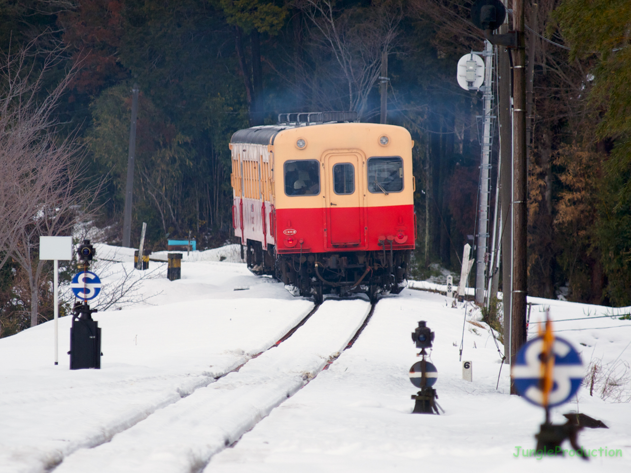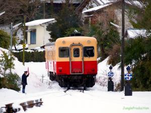 写真は排煙を上げて牛久方面へ走り去るキハです。この日、昼前には既に雨に変わり、だんだん目減りしていく雪を追いかけながら写真を撮っていました。このまま雪が続いていたら、今頃大変なことになっていたかもしれませんね。