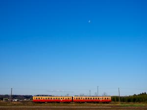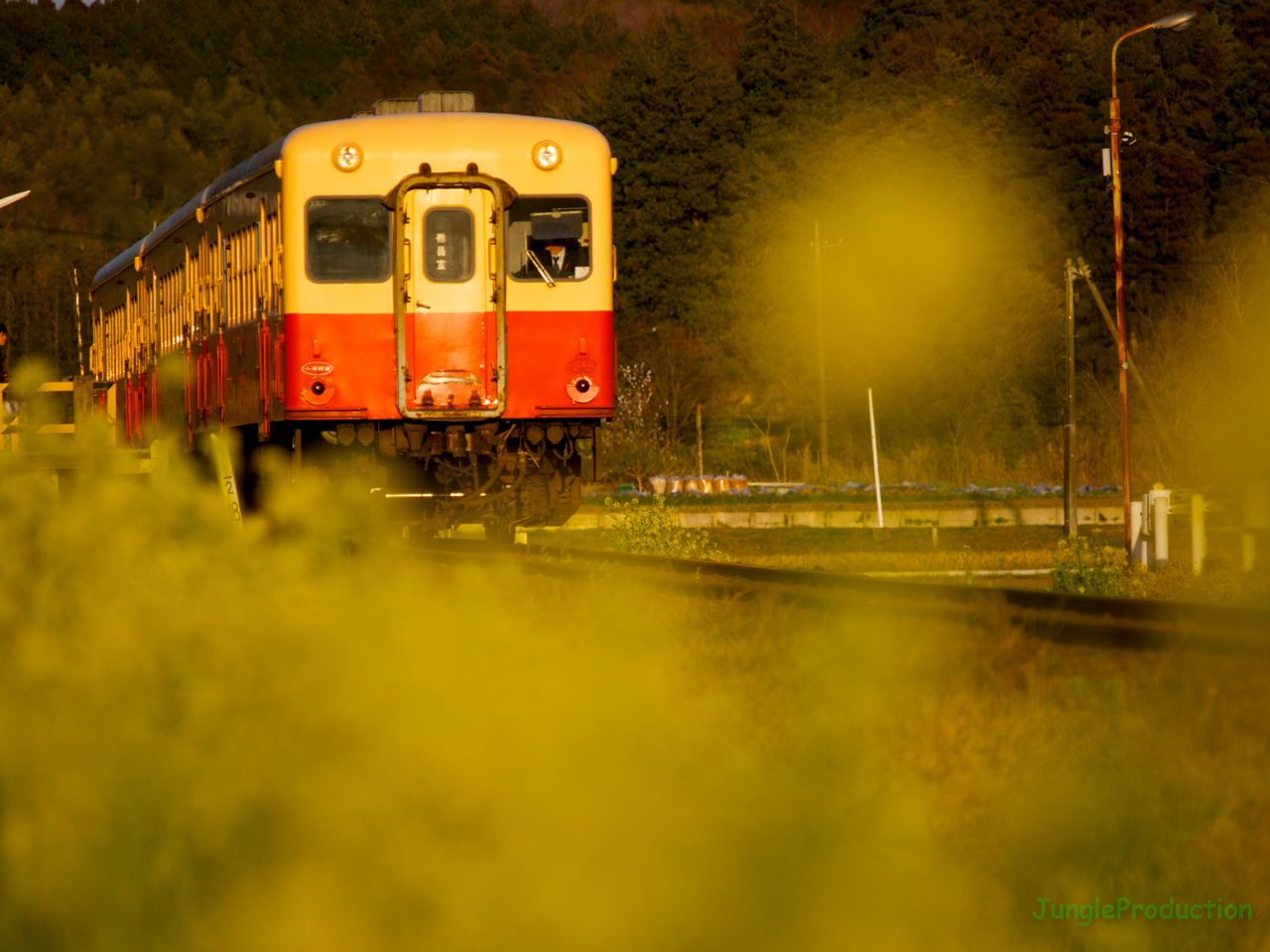 お店が捌けてお友達と沿線をウロウロ。川間駅に行ってみようという事で、辿り着いたらこんな風景でした。おりしも太陽が山の向こうへ隠れる寸前、良い感じで斜光線が差していました。……が、菜の花を夕日の中で撮ると微妙な色味になってしまうんですね。