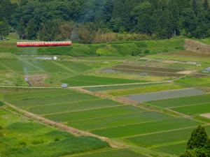 昨日貼った写真の数分後、上総大久保駅を出たところでもう一枚。山深い小さな駅のイメージで。よく見ると右上の方で木が倒れてますね。大雪の影響がまだ残っているのでしょうか。そういえば、現在、県道が月崎駅へ入る山登里の交差点から大久保駅へ入る交差点の間で崖崩れによる通行止めだとか。最新情報は現地でご確認ください。