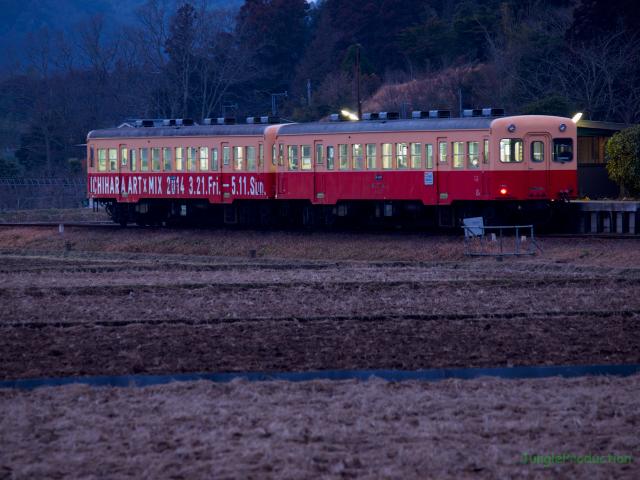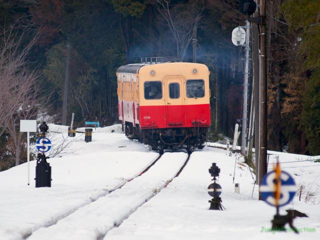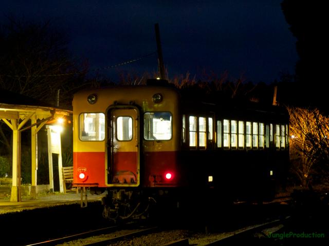 昨日貼付けた写真とは前後してしまいますが、駅の中で撮った写真を1枚。中では運転士さんと車掌さんがまったりとお休み中。出来ればテールライトが灯いていてくれれば言うこと無いのですが。この日は、この先の切り通しで土砂が崩れて暫くは月崎止まりとなっ...