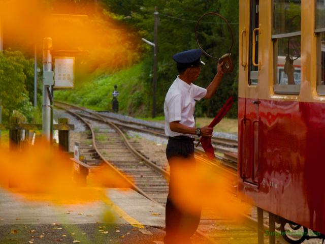 コスモスと言ってもキバナコスモスですけどね。薄紫色のあのコスモスはもう少し先でしょうか。そのキバナコスモス越しにキハを撮ってみました。行き先サボとK.T.K.の文字。切り抜きの車番。好きなアングルです。